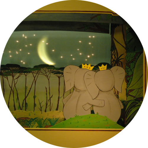 Im großen Regenwald ist ein kleiner lieblicher Elefant auf die Welt gekommen. Er heißt Babar. Die Elefantenmutter hat ihr neugeborenes Kind sehr lieb und ist glücklich, dass es gesund ist. Sie streichelt und krault seine zarte weiche Haut, die an manchen Stellen kleine winzige Härchen hat, vor allem am Kopf. Mit ihrem Rüssel wiegt sie ihn hin und her und singt leise dazu, damit er einschläft. Babar gefällt das. Er schließt die Augen und schläft zufrieden ein….